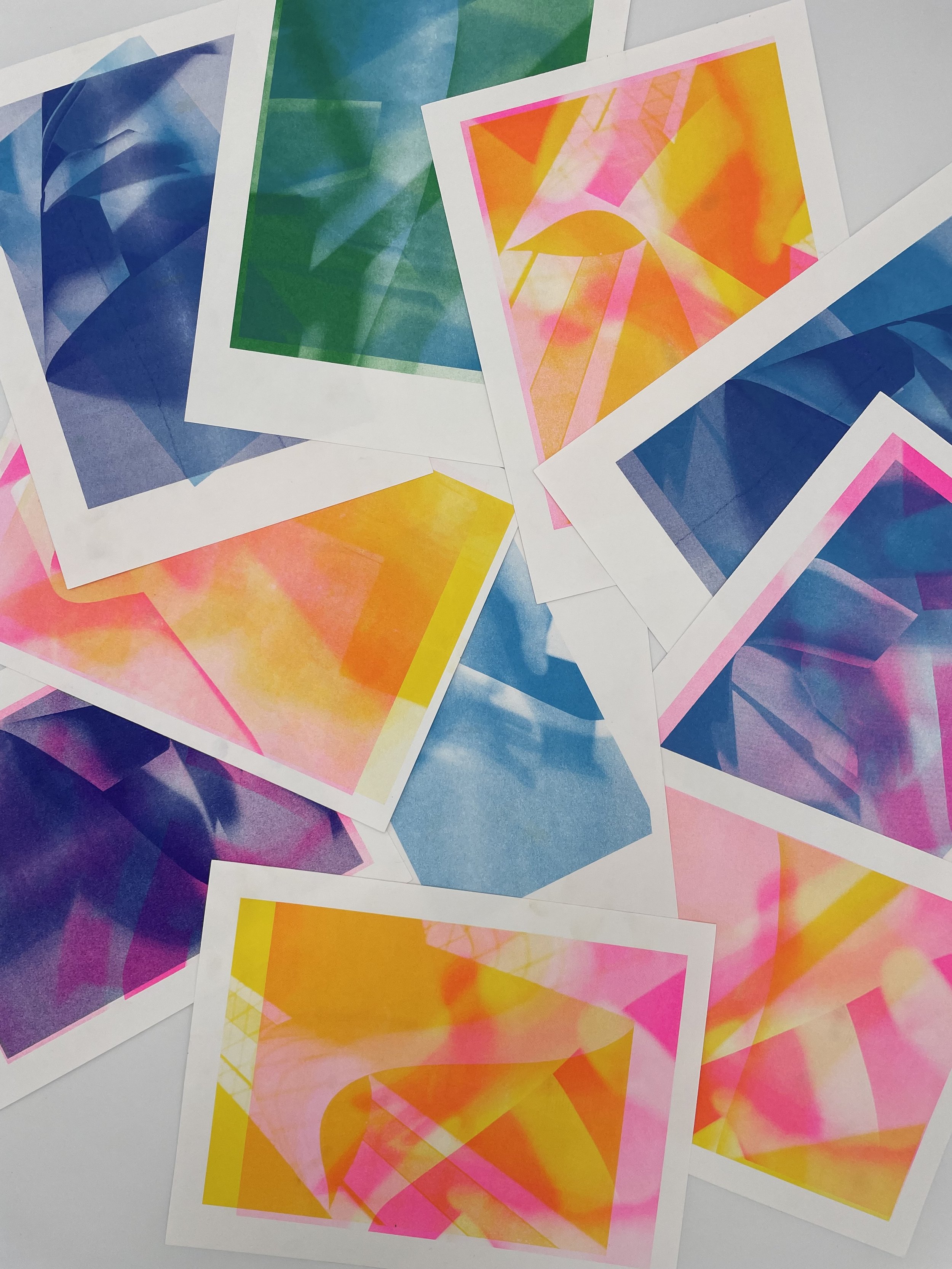 I created a riso-printed book and posters that emerged from an exploration of the form of a sponge. The process began with studying sponge shadows, crafting sponge statues, and examining their silhouettes. By enlarging these images, cutting out the shadows, and placing them in various indoor and outdoor environments, I captured new layers of shadow interactions. These evolving forms were then translated into multi-layered riso prints.